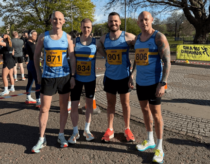 Podium places all round for runners representing Greenock Glenpark Harriers at this one! In the half marathon, Stephen Trainer put in a superb performance to take gold in a time of 1.13.21, followed by John Logan in 1.15.24 for bronze, and Graeme Percival in fourth with a time of 1.17.40. The boys have been putting in the hard miles in training and it really paid of here! Further down the field were Campbell McFarlane and James Eardley, both across the line in 1:58.