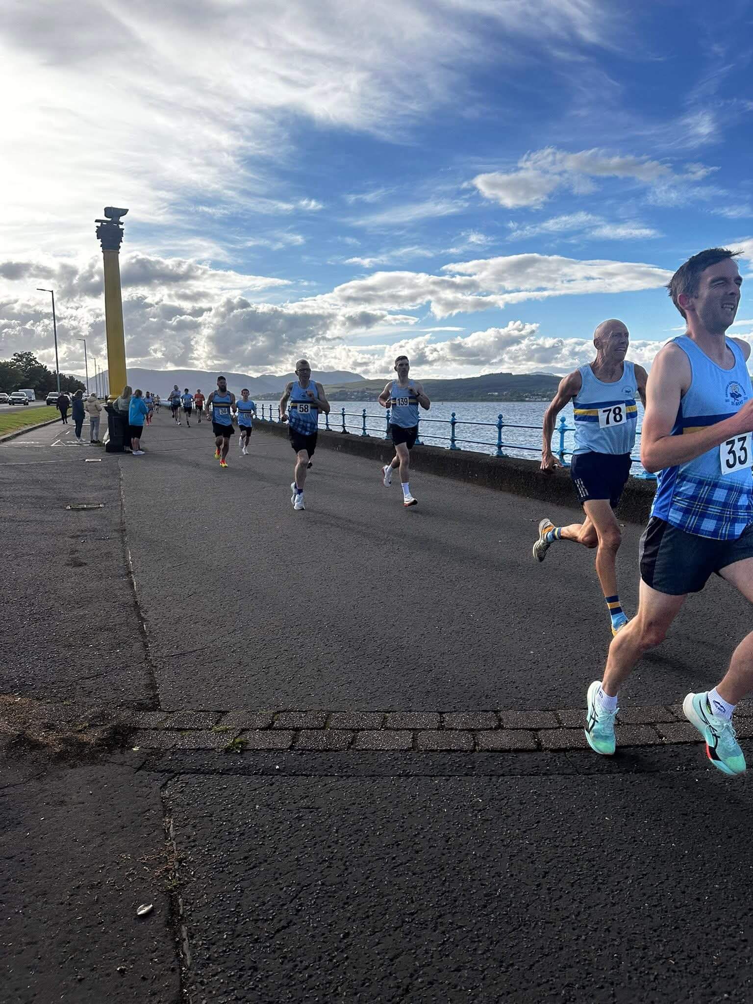 Held on 27th May 2025, the jewel in the crown of the Greenock Glenpark Harriers race calendar(other races are available), the Chisholm Mile is a true test of speed and mental endurance. Pacing the mile just right to go as fast as you dare to ensure you get to the end with something left for a strong finish. This race differs as all entrants run at the same time. The seniors and juniors all run at the same time and this race more than any other I feel envelops the family feel of our club with the 100+ vests on the Greenock Esplanade and the numerous supporters, volunteers and spectators that line the Splash from start to finish supporting all runners to achieve their best.
