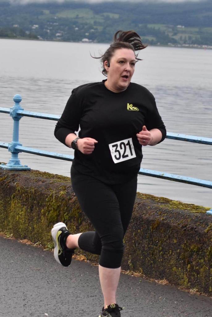 Seven Harriers managed to beat the 5 minute milestone – Club President Andy McCall continued his fine form with 4:43, as did Lewis Khan (4:51) and a blinding run from Oliver Reilly saw him over the line in 4:57. Heartbreakingly close to 5 mins were Lewis McCrae (5:01), Stephen Hanley (5:02) and Paul Monaghan (5:07). Great runs too from Owen Atkinson and Matthew Deegan, a battle for the finish took Owen in at 5:14, one second ahead of Matthew. A phenomenal run from Colin McKnight (5:18) saw him just nick it from Stevie Campbell (5:24), a PB for Colin over the mile.