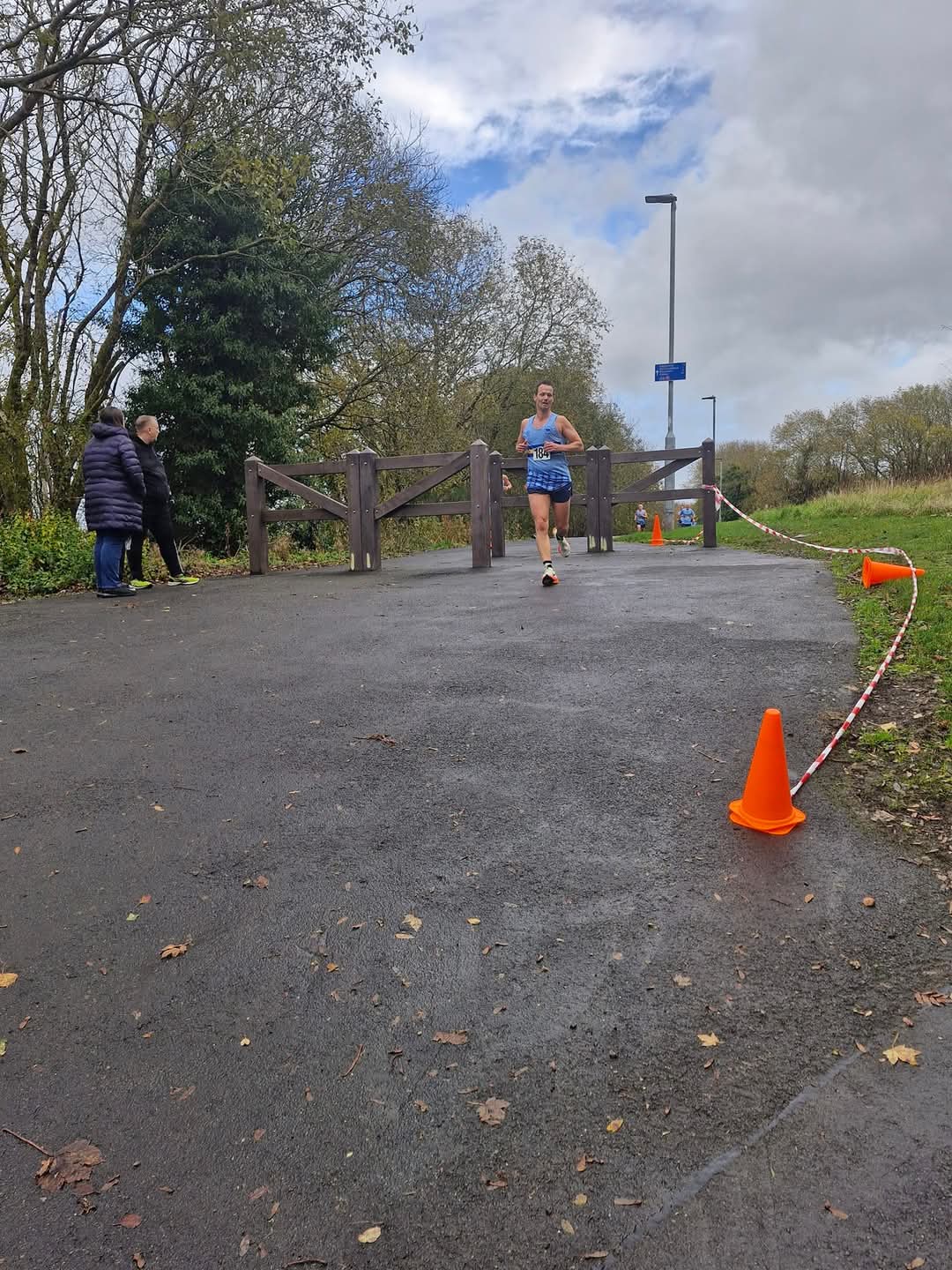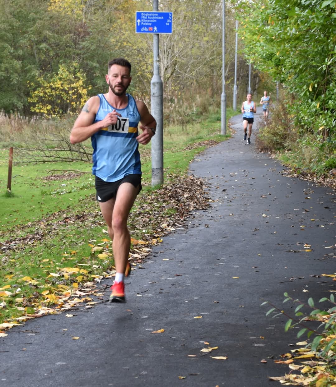 The race kicked off at 2pm with some worried about getting lost but Race Director Extraordinaire , John Stevenson, had ensured a crack team of volunteers were ready to guide runners round the course with ease. Saturday’s unsung hero award goes to William Taylor, who fresh from volunteering Greenock parkrun, grabbed his brush and set about clearing many of the gathered leaves on the cycle track that potentially could have been a hazzard. Many thanks William, a fantastic gesture which is greatly appreciated by your fellow Harriers. It truly was a family affair as William’s family joined in as marshalls on the day.