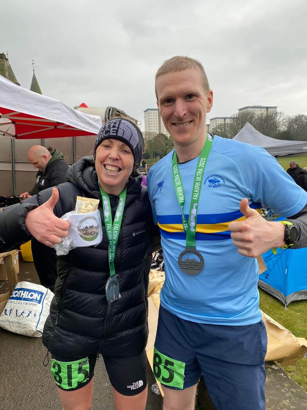 Falkirk is at the forefront of Scottish Amateur athletics at the moment with the impending Scottish National Cross Country Championships at Callander Park. In an event with a different twist two harriers toed the line at the Falkirk 7 hour trail race. The race started at 8 am with chilly conditions. Runners had 6 hours to complete as many ‘big’ 4 ish mile undulating loops as they could before switching to the smaller and much flatter 550 metre loops for the last hour.