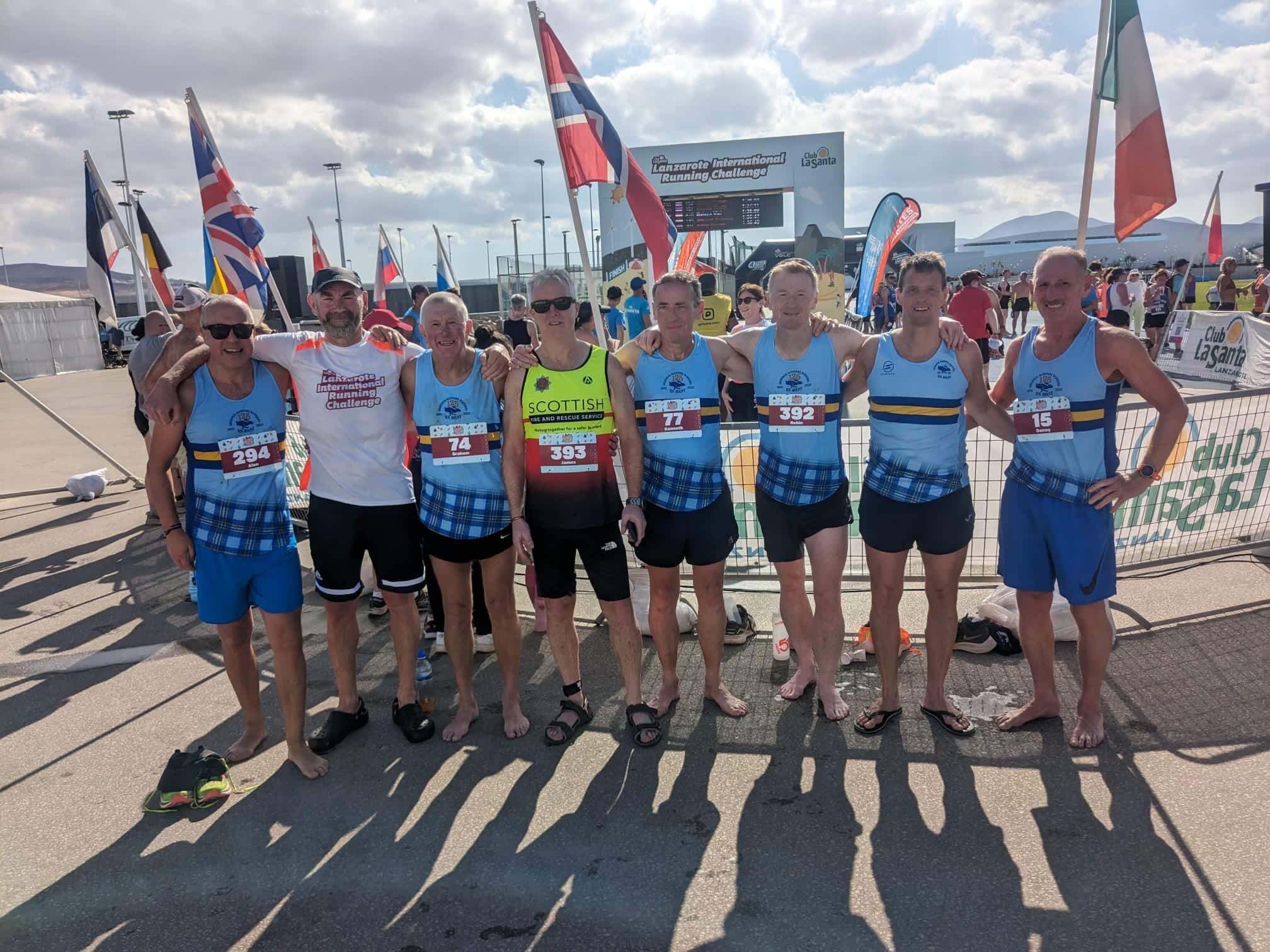 There was just over a minute between Jim Cuffe (1:12:36), running for the Scottish Fire and Rescue Service and Robin McAuslan (1:13:49) who finished 12th and 14th respectively in the M60-64 category. Kenny Scott (1:23:50) finished 17th of the 29 starters in their category.