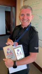 Unaware of events just up ahead, Kev had been feeling that the wheels were coming off his own race, but he called on his ultra marathon experience and ability to find extra strength when needed. He worked his way over the final hills and ran with real determination through the city streets to the finish in Bught Park, crossing the line in 2:59:12. Not only achieving the elusive sub-3, but in doing so claiming the Police Sport UK Championship v45 silver, and being part of the Scotland team taking the v40 men’s team silver and overall men’s team silver.
