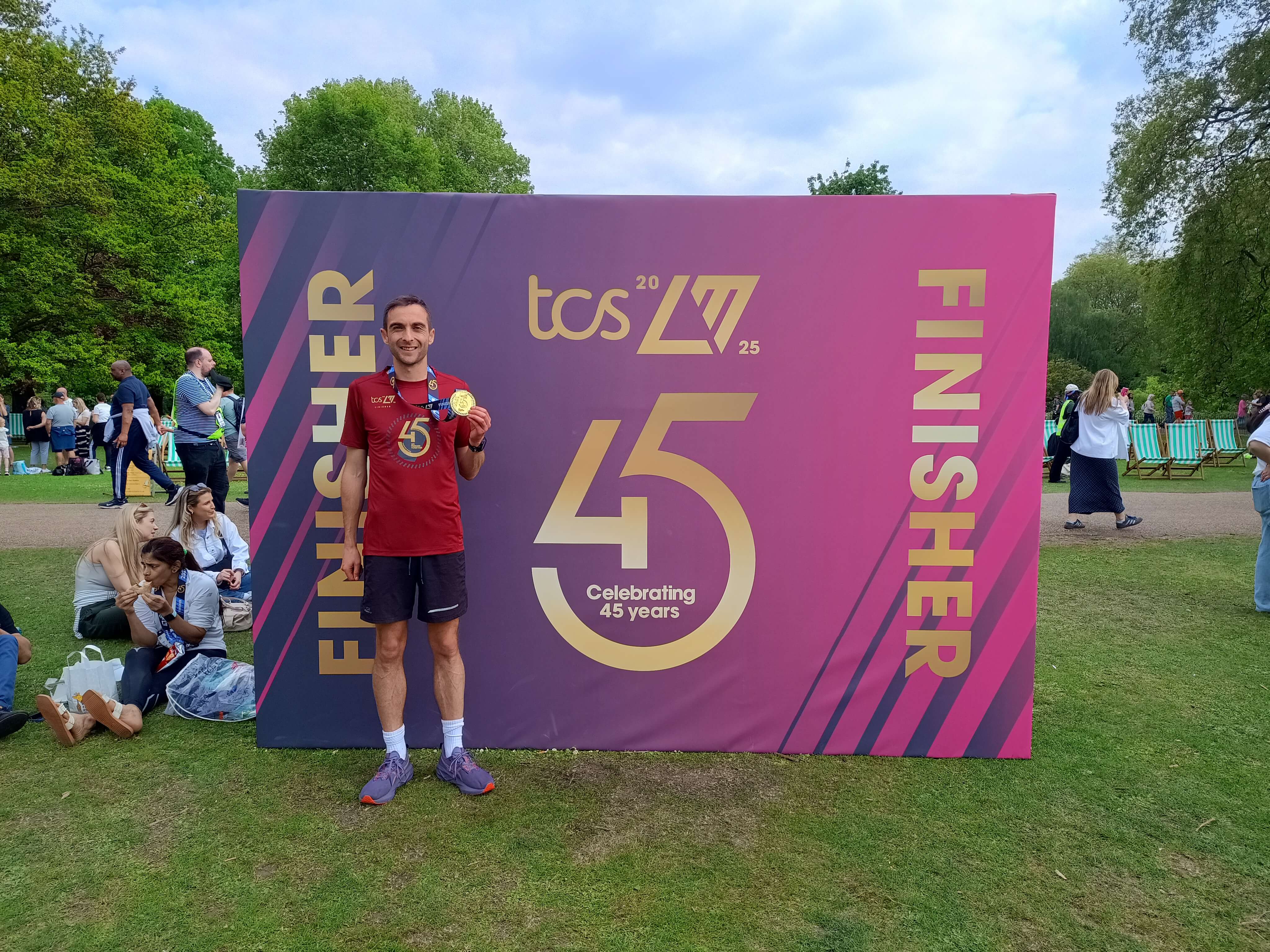 I breezed to halfway bang on target pace. I didn’t alter the pace plan based on the heat, just took on a lot more water….which may have caused toilet stop at mile 15! After that, the next gel didn’t go down at all, same issue I had at my only previous marathon. Stopped a few times to gag and couldn’t get going back on the pace. Both knees went simultaneously and my achilles flares up, all in the space of 3 miles! Really chuffed with digging in, run/walk for 10 miles. Was amazed to see 3.21 at the end, felt a lot slower. Only 4 mins slower than PB, but 10+ shy of my goal…. Don’t care! What an experience. Might even buy the photos for the first time ever.