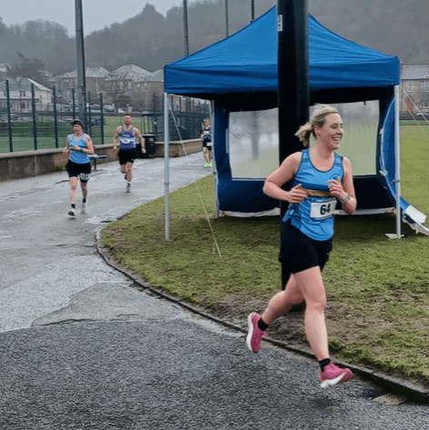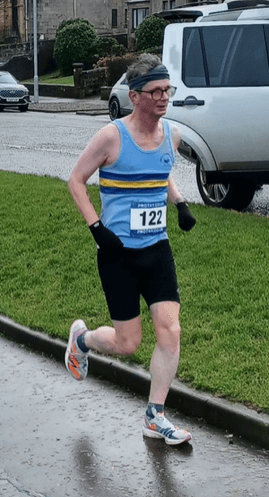 Captain Stephen Harrison had placed a target on Owen Atkinson’s back early on, and despite falling behind in the first half of the race, gradually pulled the early distance between the two back over the duration of the run. Owen has been struggling with illness and fitness over the last month or so, and couldn’t hold the lead between the two in the last kilometre, with Stephen moving ahead to finish in 32:01 (5th V50) and Owen over the line in 32:06 (16th V40).