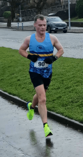 Our first medal of the day went to the first female Harrier home – a superb run from Lorna Mitchell (34:41) saw her taking bronze in the ladies FV40 category. Next over was Steven Smith (35:29 / 8th V50), and he was followed in by another age category medallist – Robin McAuslan’s time of (35:54) taking third place in the V60 mens category. It shows the kind of form Robin has developed lately as he was slightly disappointed not to go one better than his bronze in 2024.