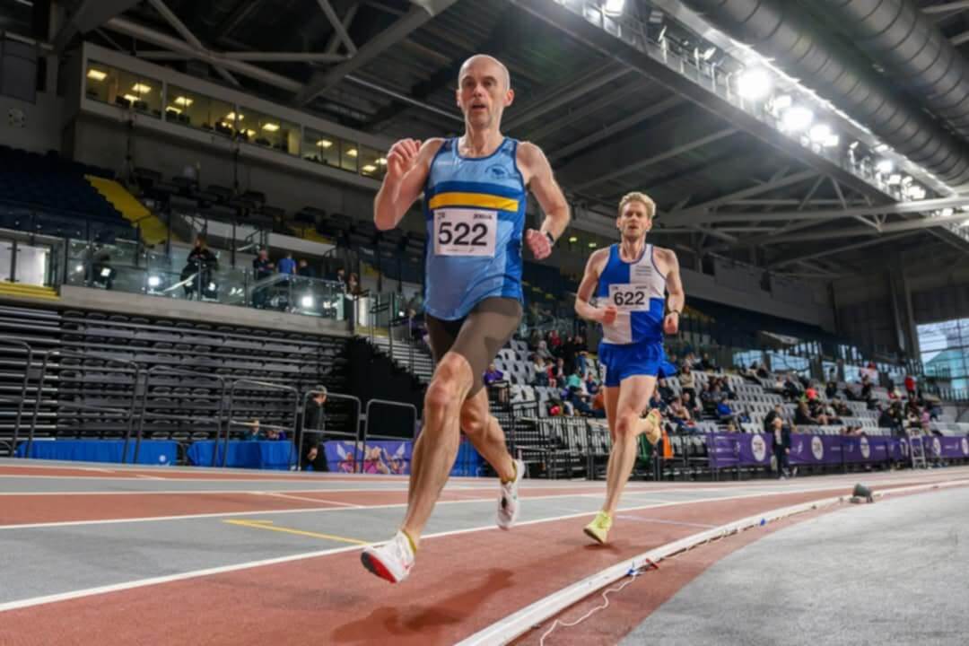 There was success for Greenock Glenpark Harriers at the Scottish Athletics National 1500m indoor masters championships on Sunday 2nd February 2025. Neil Lafferty and Jill Cox both returned from the Emirates Arena with 2nd place finishes, securing national silver medals to add to their collections. Neil and Jill have been part of the regular track sessions over the new year period and this speed work certainly paid off. In his indoor racing debut, Neil started sensibly, slotting into 2nd place. Steadily building his pace as the race progressed, Neil peaked in the final couple of laps, finishing clear in 2nd position within the v35/45 final, securing v45 silver with an impressive 4:21.61 In a competitive woman’s 1500m final, Jill had a great start settling comfortably into the front 3. This trio steadily distanced itself from the chasing field as the race developed. Jill showed her strength to maintain her fast pace throughout, earning a well deserved v45 silver medal in an excellent 5:02.31
