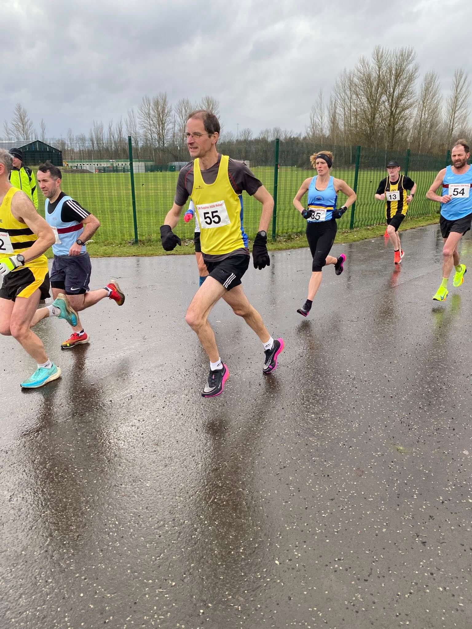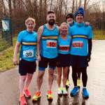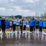 Five ladies teams and three men’s teams boarded the Harriers Team Bus to Motherwell on a bitterly cold Sunday morning to take part in the SVHC Masters Relays this year, an event for which the Harriers have recently been showing up well in the results. Today was no different, with success coming in both the gender categories – some brilliant running in very difficult conditions, the newer out and back 6k course meaning runners faced a dreadful headwind after the turn on the closing two kilometres.