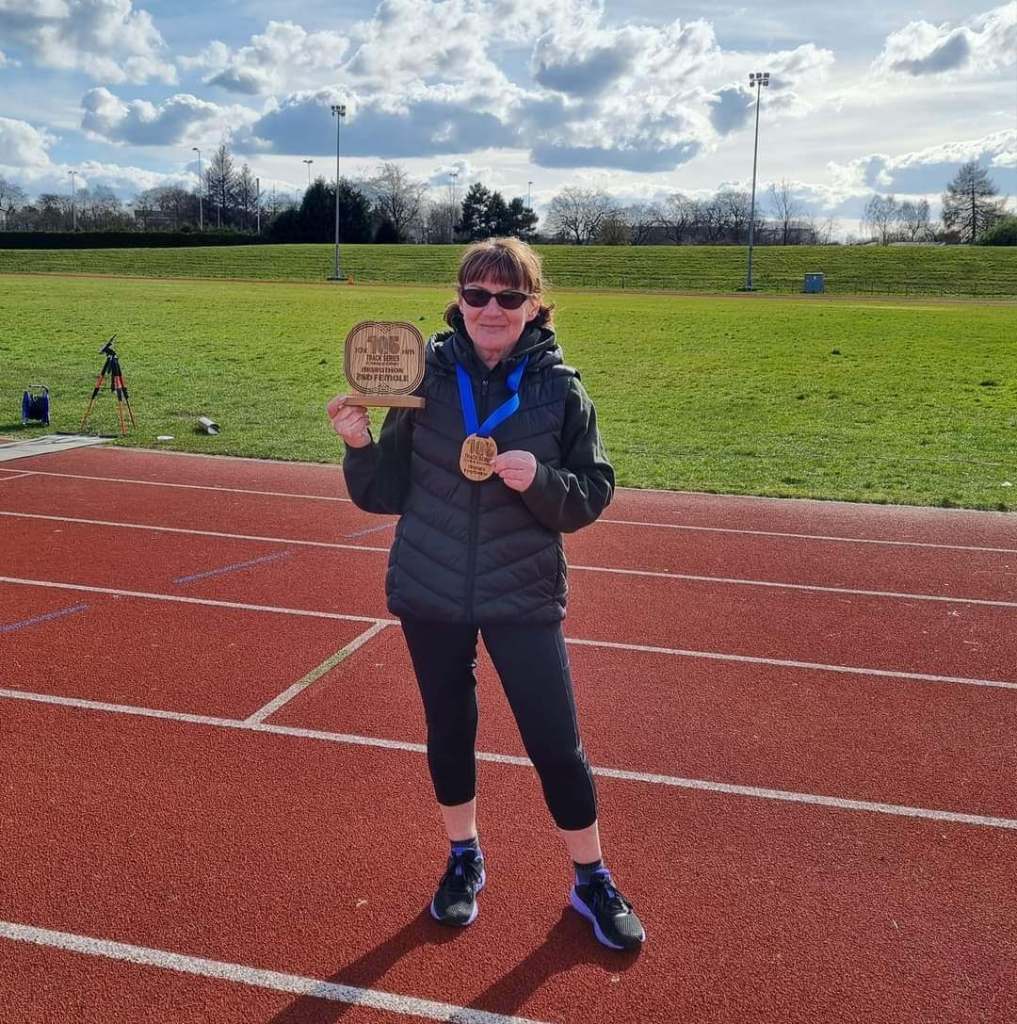 The track marathon is proving to be popular with the Harriers. Each year we have runners taking part in the full series and the marathon. On a hot Sunday 31st March, Liza Brydon and Fiona Cushnaghan took on the 105 (and a half) laps of the track. This may sound daunting to most but the appeal of toilet stops whenever you want, fluids and nutrition on hand and you are never on your own appeals to many. Liza was first Harrier to cross the line with a brilliant time of just over 4 hours and taking 2nd female prize. This was to be Fiona’s 25th marathon and according to Fiona it was a hot one! Fiona was delighted to receive the award for 2nd overall in the series!