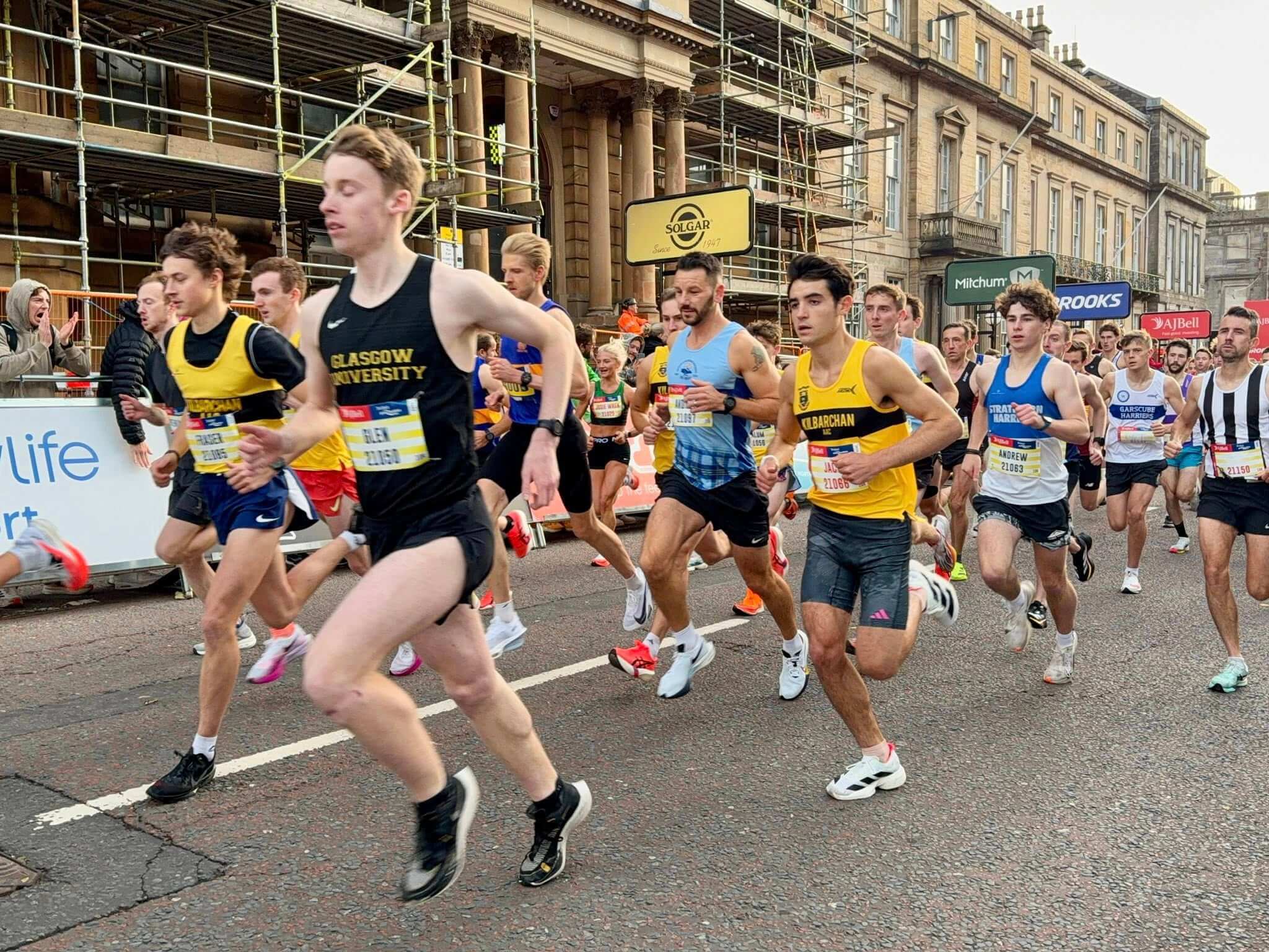 With refurbishment works underway at George Square, the start line was moved further up St Vincent Street, giving runners a fast 400m downhill start, a welcome change to the course.