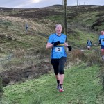 Charlotte McKay led the runners off followed closely by Yvonne Prager. The runners then set off at short intervals in small groups chasing down those in front. The route takes runners up the Stony Road and leads into a number of different sections of gravel, mud, downhill, uphill, grass with the odd ‘puddle’ thrown in for good measure.