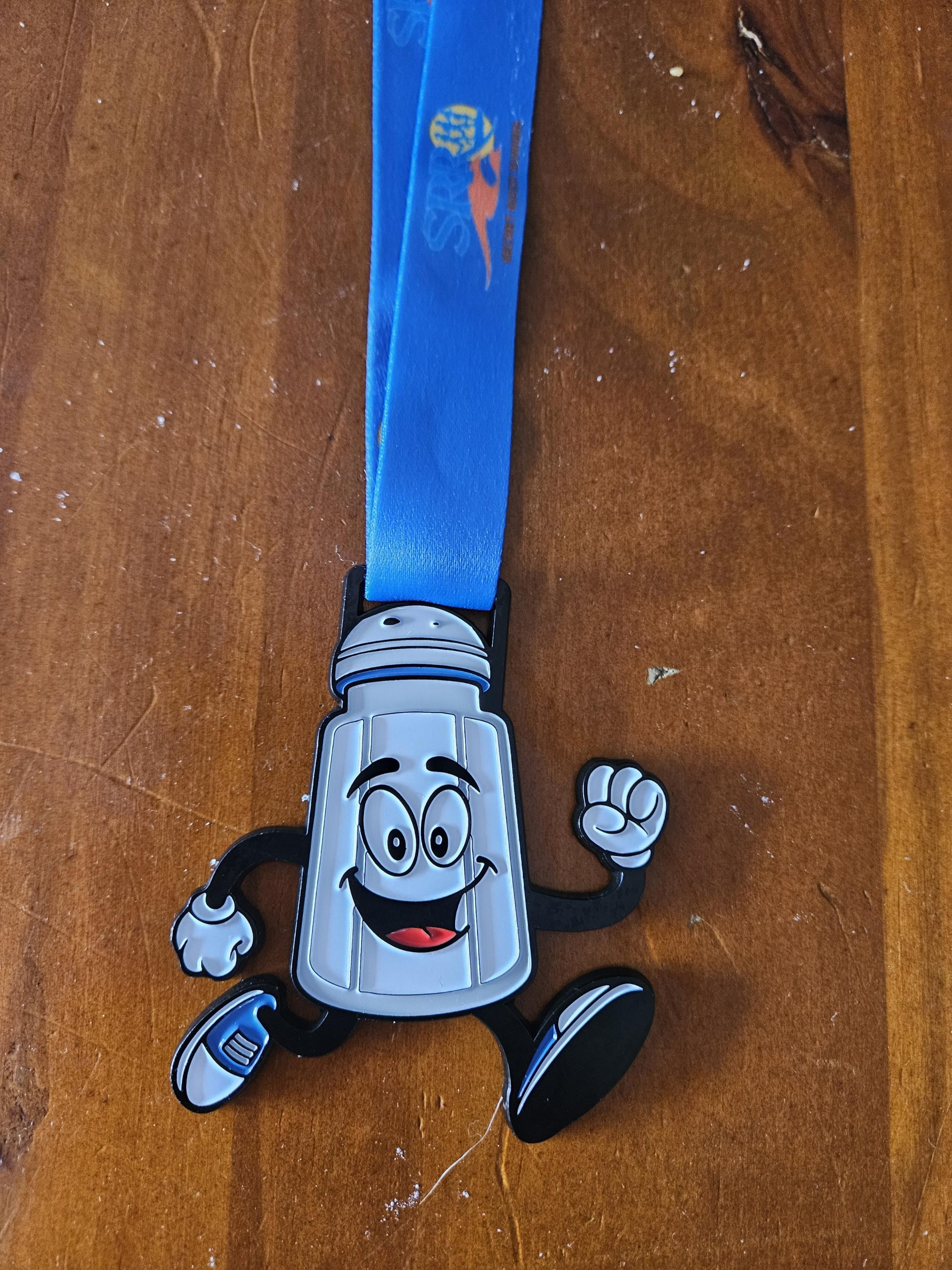 The Salt Shaker Trail Race was organised by Rockinghams local running club, the Secret Rocky Runners. It took place at Lake Walyungup which is a shallow Salt Lake used locally for land yachting and trail walks. My brother had signed myself and Martin up before we arrived in Australia. There was a 5km, 12km and 24km option and a kids 2km fun run. The 12km was one loop which sounded like a good option and doable in 20-degree heat. I knew we were going to be jetlagged as we arrived in Perth on Friday night, 2nd May. The Salt Shaker was on the Sunday 4th May. I had asked my brother what the route was like as he had completed the course last year. He assured me that there weren't many hills and I wouldn't be running on sand. I was also worried about running in the heat, again he assured me it was pretty cold at this time of year. The start was well organised with a coffee cart and toilets and there were 3 water stations out on the course. The kids were getting ready to start the fun run. Most of them had embraced the fact it was May the 4th (Star Wars Day) with Star Wars outfits and light sabres. The 24km had already kicked off an hour beforehand. The 12km started at 8am, my brother and Martin lined up near the start of the pack. I nestled in at the back, as my goal was to go at a steady pace and enjoy some new surroundings. I hadn't slept great the night before so knew it was going to be a slog. We had also done the local parkrun the day before. The route followed a gravel path on the outskirts of the Salt Lake and I was quite grateful for the gentle breeze in the 20-degree heat. The faster runners were quickly no where in sight. The gravel path, which I was led to believe to be fairly flat, very quickly became a roller coaster of up and down hills. I actually started making up a wee bit of ground here (Coach Alan O's hill sessions obviously paying off). If I was as fast as my brother I would have seriously considered tripping him up right now as me and him obviously have a different opinion of what contemplates hills. Surprising, my legs were feeling OK, unlike the parkrun yesterday where my legs were like dead weights. Up ahead was the first water stop which was around 3km in. 2 volunteers who were wearing hoodies in weather which would be classed as "taps aff" back home were handing out cups of water. I don't cope well in the heat and quickly poured the cup of water over my head to try and eliminate the roasted salmon look. The 2 volunteers gave me a few strange looks and off I went continuing along the gravel path of ups and downs. Around 5km in, the route detoured off to the left and into the bush on compacted sand. This was a welcome respite in the shade and from the hills, although I did start thinking about how little survival skills I had if I were to encounter any of the local wildlife. Soon at a clearing a 6km was another water stop and a chance to grab some sweets, I thought a few jelly snakes were quite fitting. Soon the bush trail led back onto the gravel for a short spell then headed off to the right onto the Salt Lake, then back into the bush. After a while I was on soft sand dunes and I could see people ahead of me walking. I think I must have been about 8km in at this point. I decided to give jogging a bash on the sand as I could use the footprints already carved out in front of me. The sand dunes were never ending and my legs were feeling it now. A wee sign with the words last hill was stuck into the sand at the bottom of a large sand hill. I thought to myself, this better not be some kind of Aussie sick joke. The sand started to become compacted and the route started to level out. Soon I knew I was heading out in the direction of the Salt Lake again. At the bottom of the path, I could see my brother and Martin cheering me on which was a nice surprise. They ran the remaining 1km ish with me to the finish line and by this point I was glad of the extra support. At the end of the race, we received a medal in the shape of a salt shaker which I felt I had earned. The Salt Shaker (according to Strava) was 129m of elevation, over a variety of different terrain which made the race a bit different to what I'm used to running on. Did I enjoy the race? Absolutely! Running is a great way to see and experience places and I would probably do it again if I had the chance. Time 1.19.29.![]()