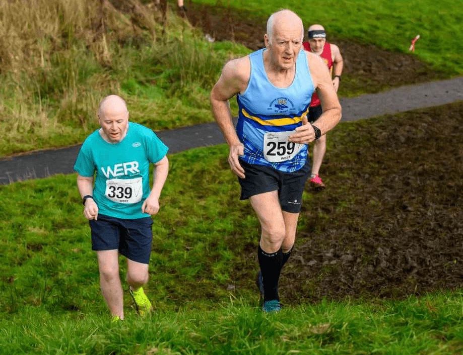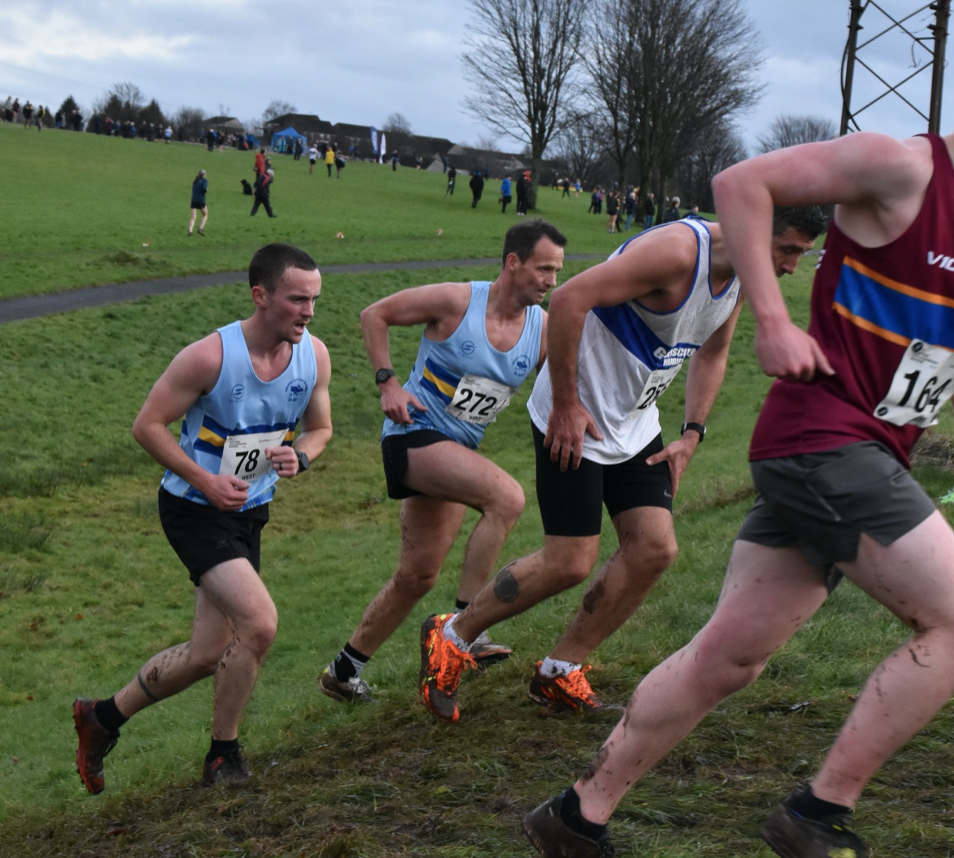 Struggling with a late injury, Aaron Fullerton ran a solid 31:18 in his first XC for the club, with John Stevenson, Graham McGrattan, Alan Robertson (also on his XC debut), Micky Dunn and Greg Luke all going well to go well under 35 minutes. The Harriers places were completed by Gerry Gallacher, Alan O’Rourke, CM Chesterman and Frank McMahon – McMahon, like Charlotte McKay, delighted to record another 1st age category in the V70 group.