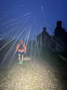 The anticipation and uncertainty creates an electrifying atmosphere at the start line, all 4 harriers met up for a team photo before settling down to get their game faces on. 0100 and the race is started by a loud horn, a quick run down the high street and then off into the dark as a see of heard torches snakes its way towards Carbeth. Each runner is required to have a motorised crew meet them at certain points and it was down to some other Glenparkers to make sure their runners were fed, watered and counselled with some tough love.