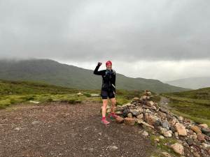 The path runs through Rannoch moor at this point which is remote, exposed and undulating, but Kirsty kept up her fine form and was making decent progress. William and Greig had came in to Bridge of Orchy roughly at the same time, William was struggling with his nutrition at this point which gave Greig the chance to push on and take a bit of a lead on him. With all the runners safely through Glencoe they then head up and over the Devils Staircase – a pretty tough climb rewarded with outstanding views towards the mamores and back over Glencoe, however not this time, as it was overcast and starting to rain.